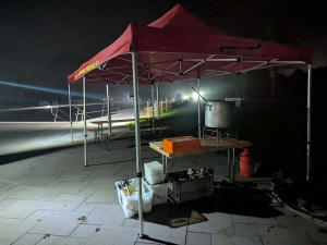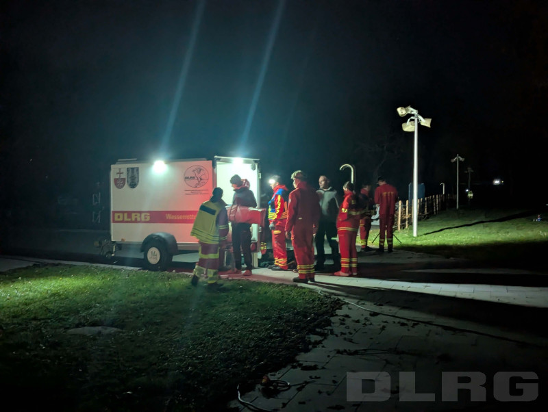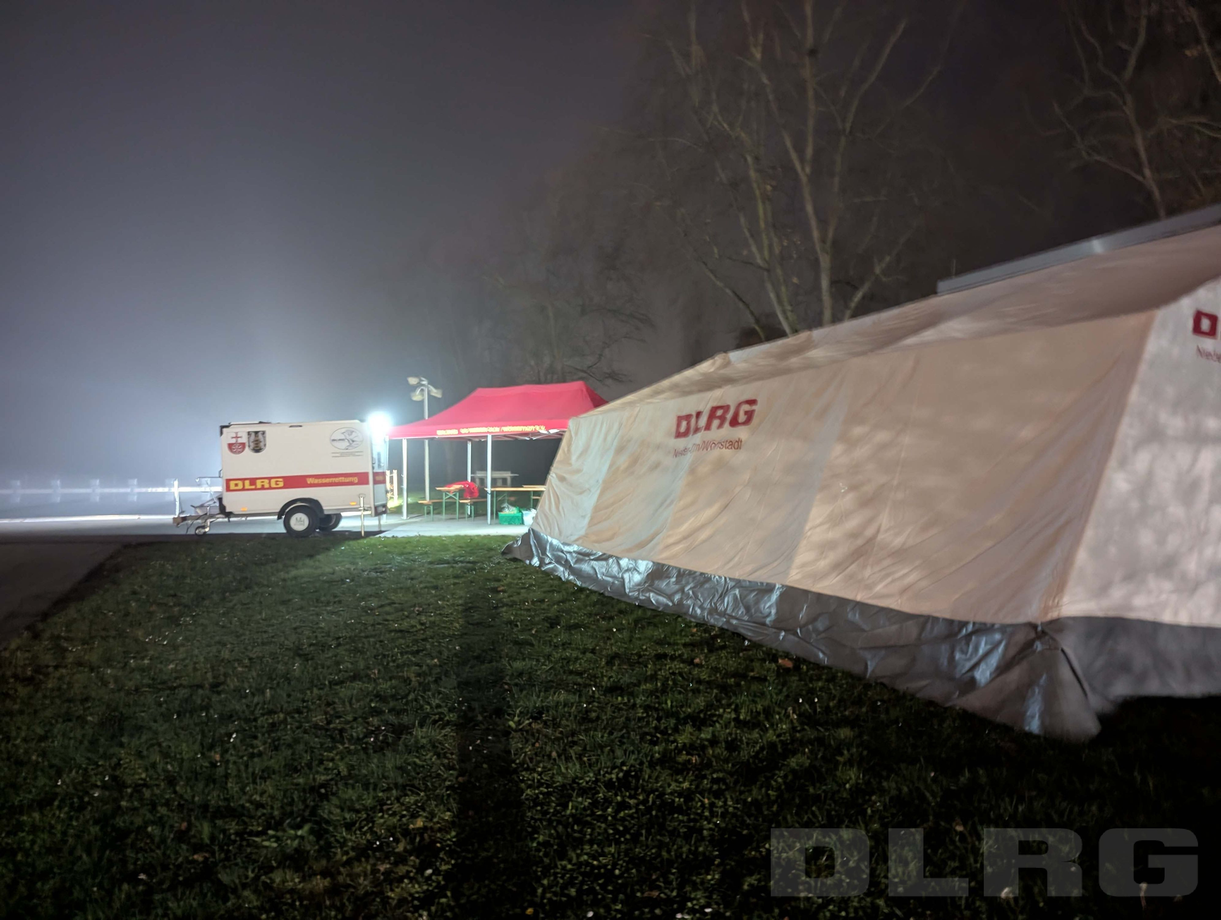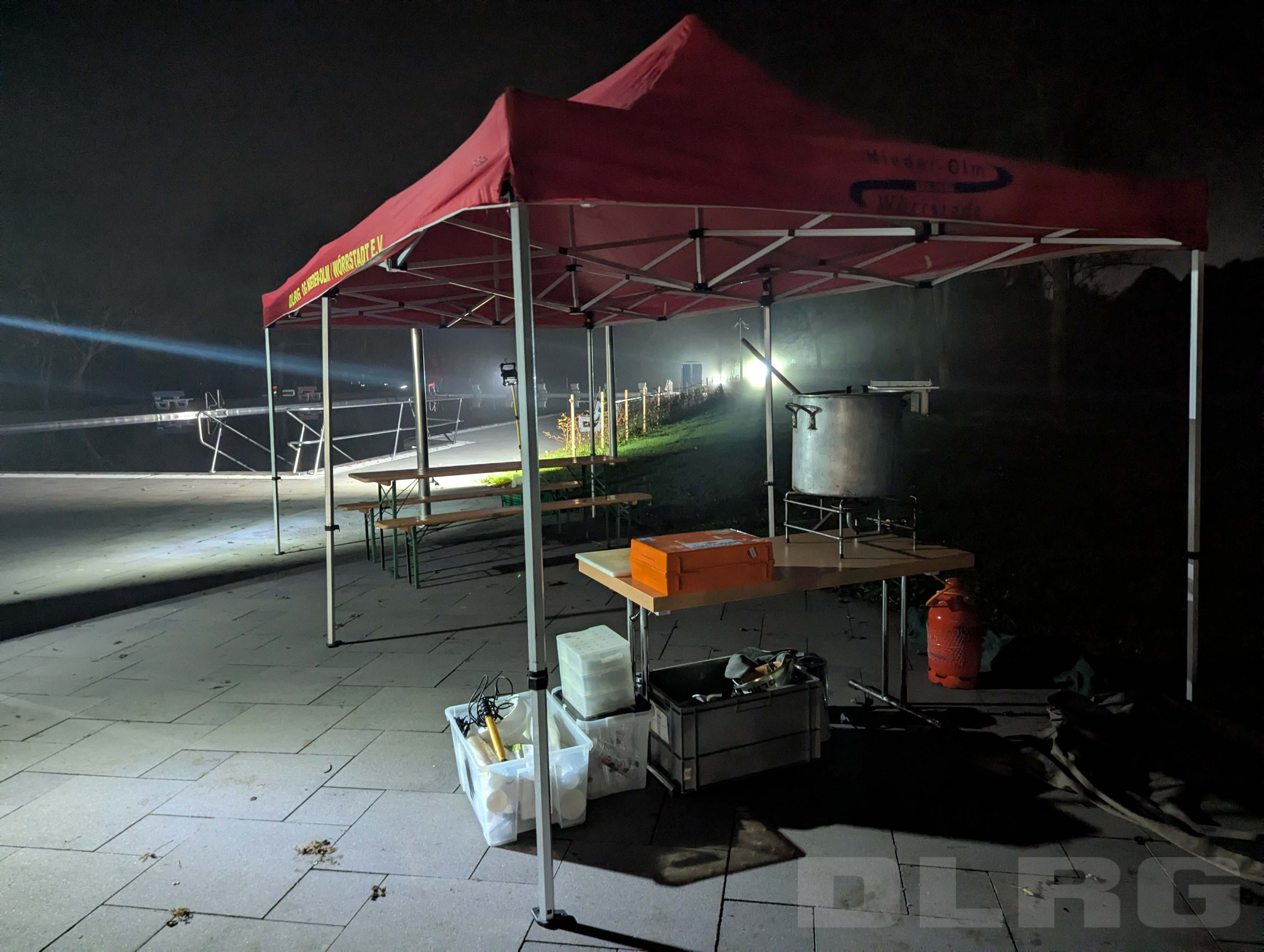 Abgeschlossen wurde der Tag mit einer Übung auf dem Freibadgelände in der Dunkelheit. Hier galt es in einer fiktiven Situation die Polizei bei einer Vermisstensuche zu unterstützen: Es waren eine Verpflegungsstelle und ein Behandlungszelt aufzubauen, sowie ein Wasserbecken auszuleuchten.